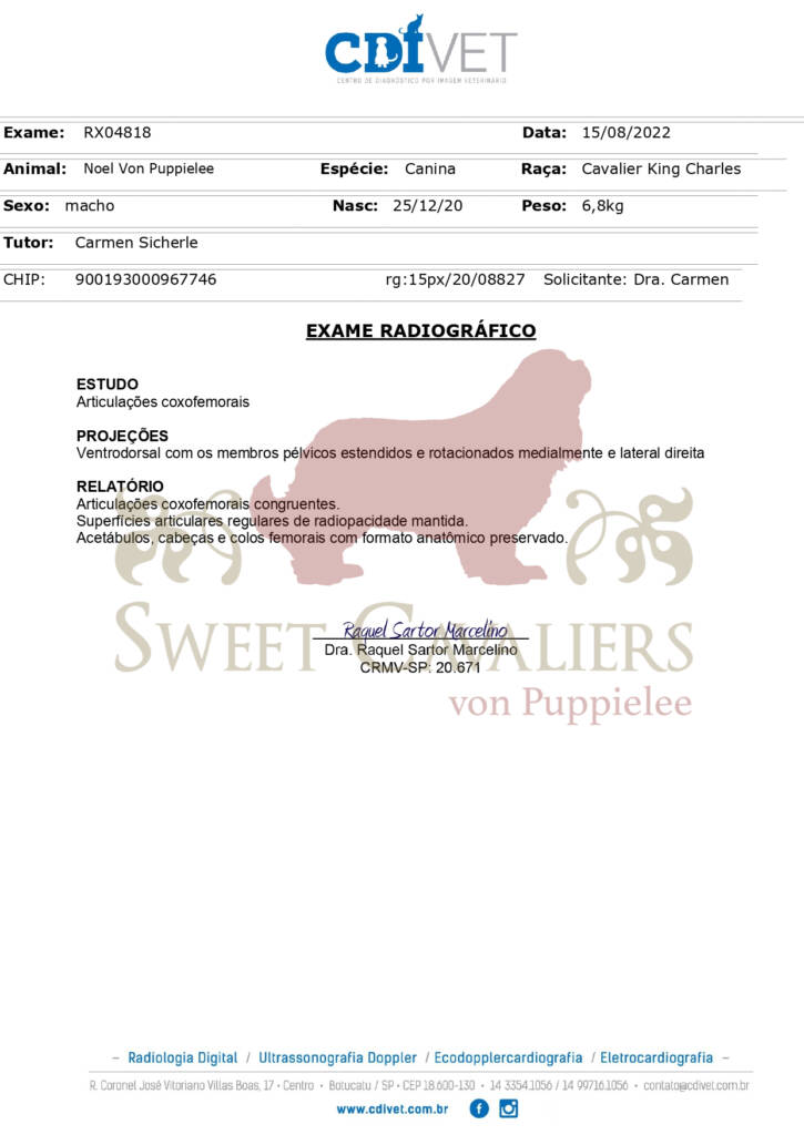Exame de DNA negativo para Dry eye, Curl Coat e Episodic Falling. Exame cardíaco (ecocardiograma) anual. Exame oftalmológico e patela.
